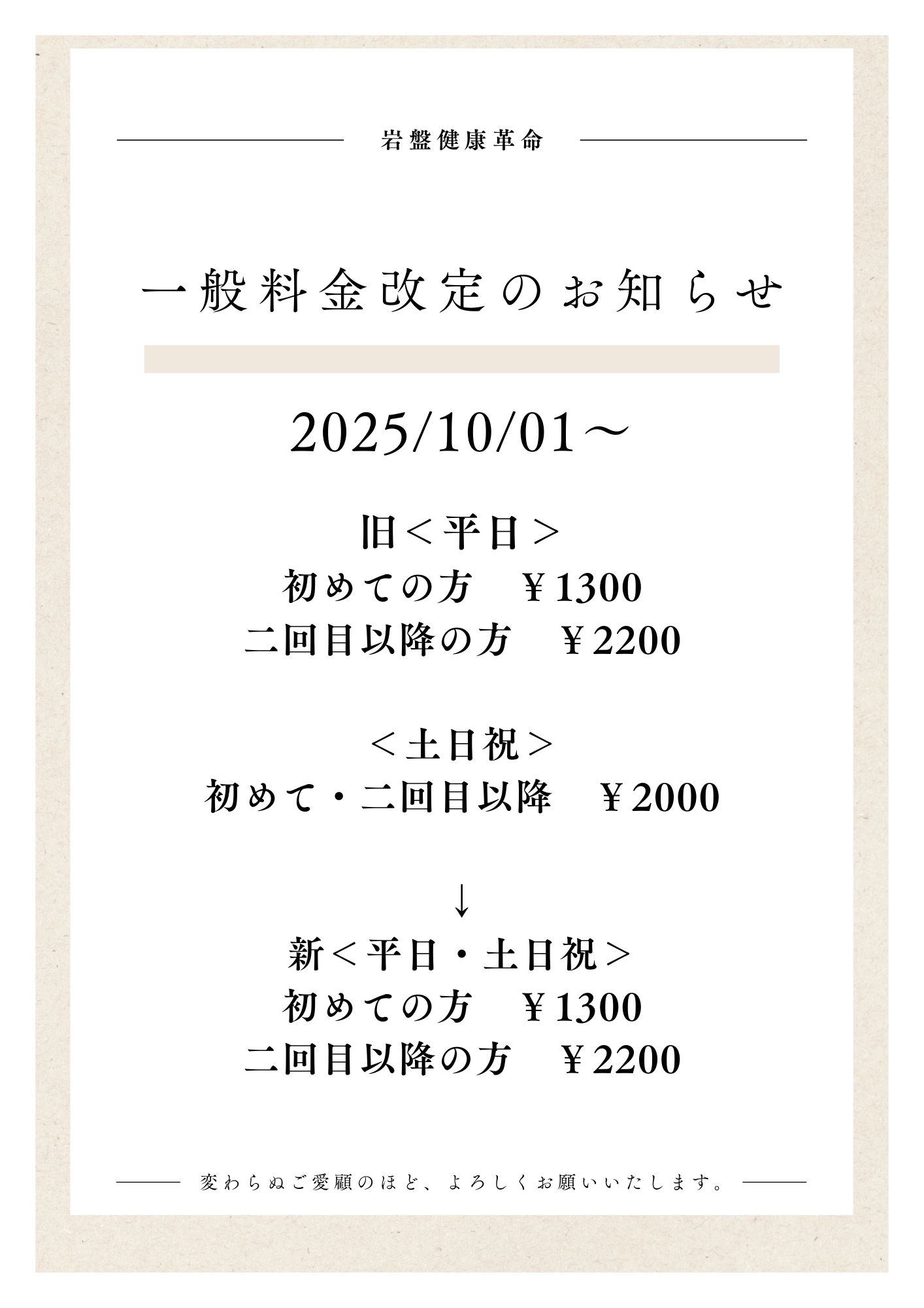 いつも岩盤健康革命をご利用いただきありがとうございます。